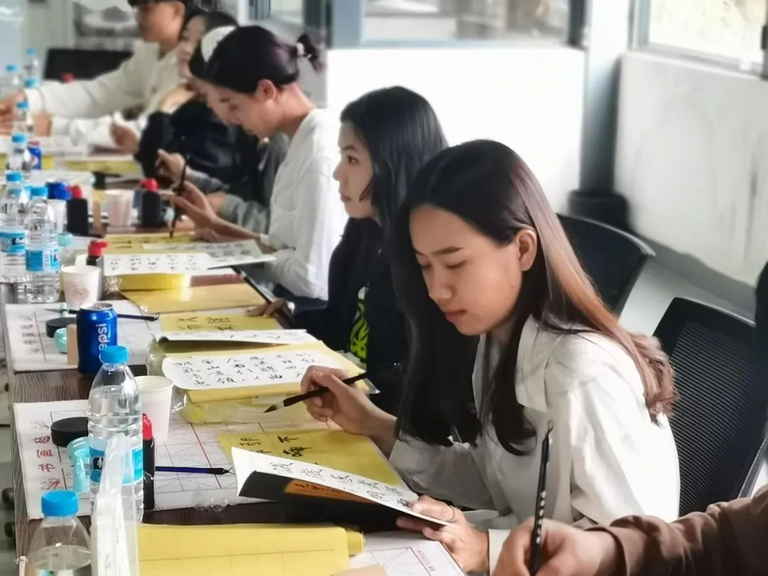 在西山茶马古道的非遗文创研学基地,面塑传承人的作品栩栩如生,在面塑老师的指导下,学生们亲身体验制作“中华醒狮”,近距离感受中华传统文化。在中国学生的讲解下,一只只面塑醒狮就在留学生的指尖活灵活现了起来,看到亲手制作的作品,留学生们开心不已。在云南省书法家协会张玉杰老师的指导下,留学生们从认识笔墨开始,认真临摹,写下了一个个中国汉字。
