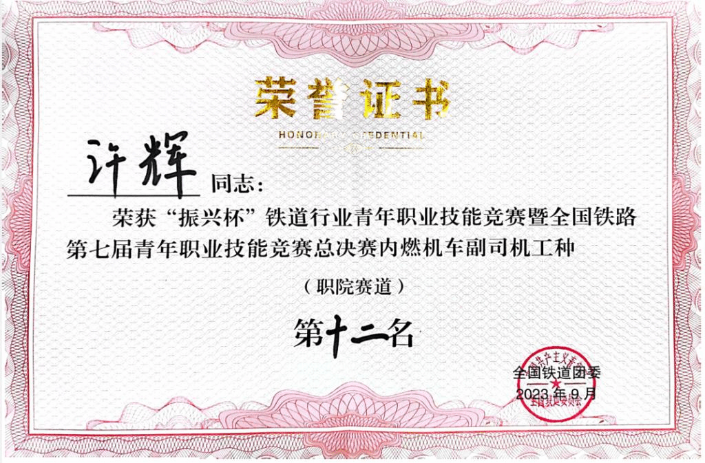 李剑老师指导21级铁道机车1班许辉、21级铁道机车2班杨贵卿参加内燃机车副司机工种(职教赛道)竞赛,参赛同学分别荣获第十二名、第十五名的好成绩。