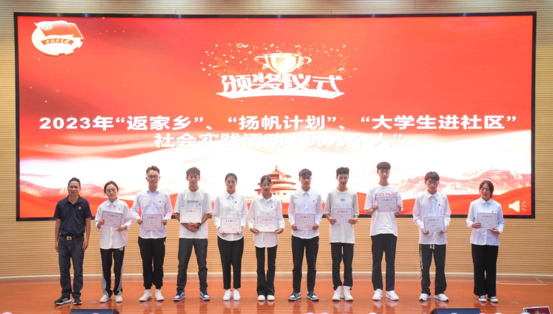 机电工程学院党支部书记为2023年“返家乡”“大学生进社区”“扬帆计划”活动“优秀个人”颁发荣誉证书