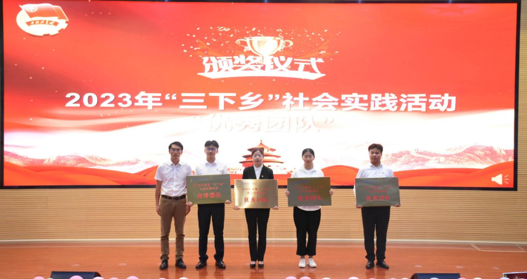 组织部部长为2023年“三下乡”社会实践活动优秀团队颁发奖牌