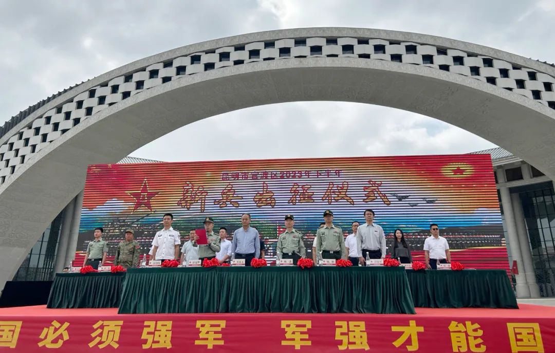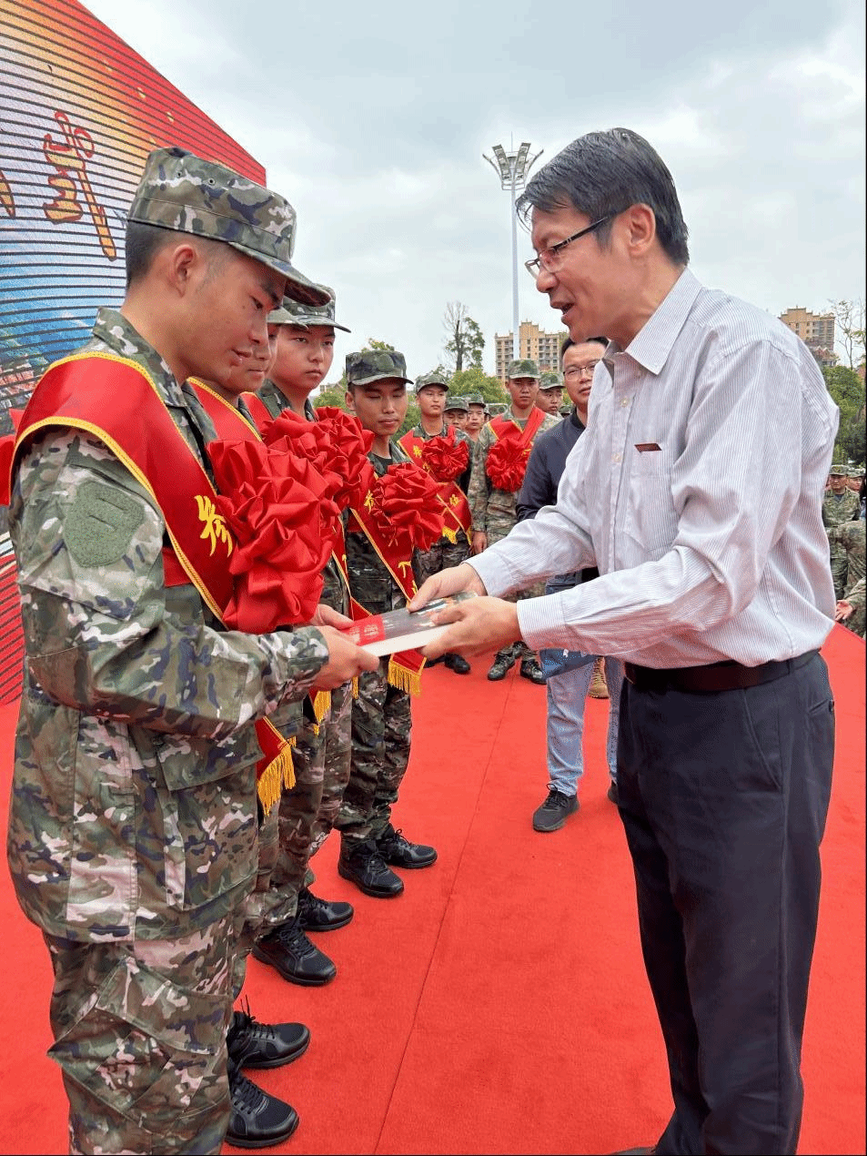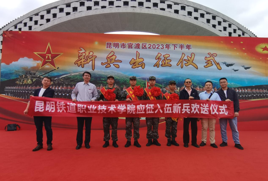 9月15日,昆明市官渡区武装部举行2023年秋季大学生应征入伍欢送仪式。学院副院长田效军、武装部负责人、各二级学院党支部书记以及辅导员参加仪式,共同欢送新葡萄4名同学参军入伍。