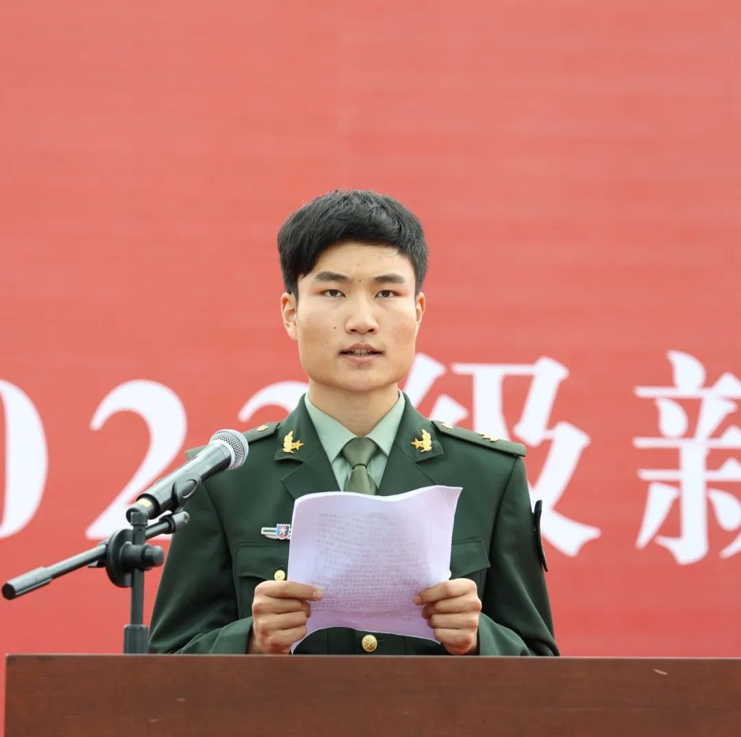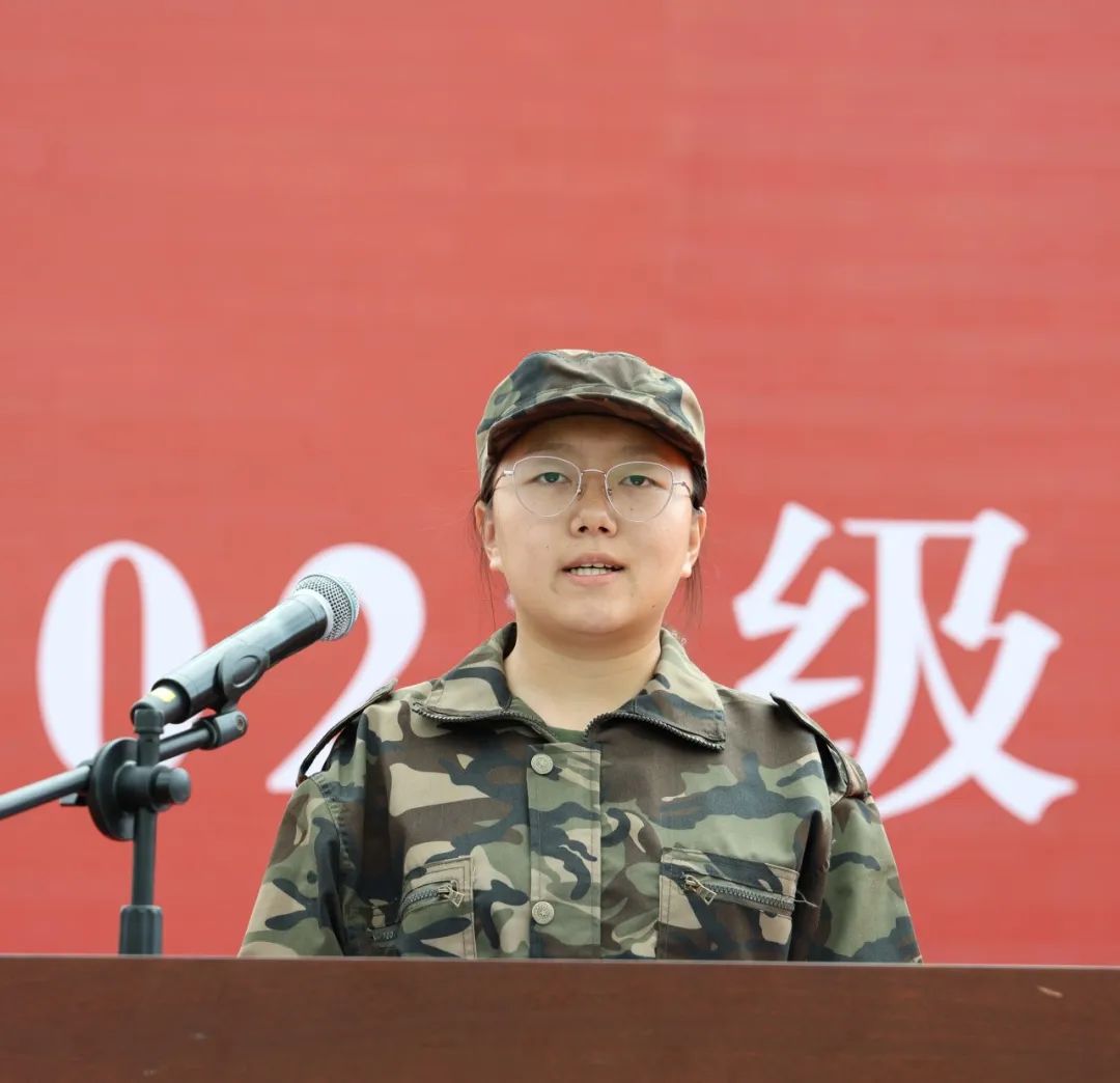 铁道运输学院2023级铁道交通运营管理专业刘昶代表新生发言,她表示要提高思想素质,增强责任心与使命感,努力成长为一名德才兼备的新型人才。同时代表新生表态,将坚持铁一般的纪律,服从命令,用顽强的意志和拼搏的精神圆满完成军训。