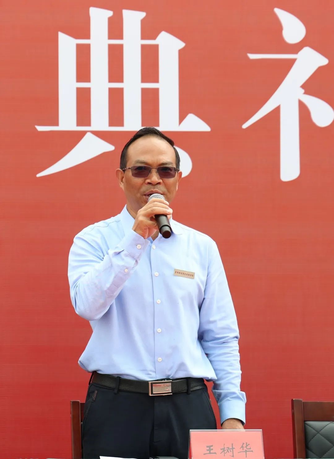 党委书记王树华为新生代表佩戴校徽