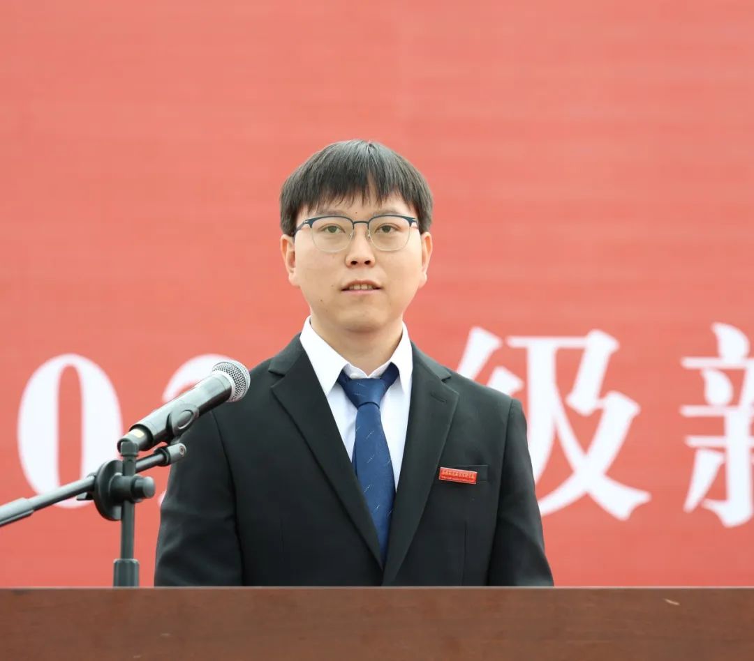 机车车辆学院2022级铁道车辆专业陈光伟作为老生代表发言,他号召大家做一个有“志存高远”的理想、“舍我其谁”的担当、“任劳任怨”的吃苦精神和“披荆斩棘”的奋斗精神的新时代好青年。