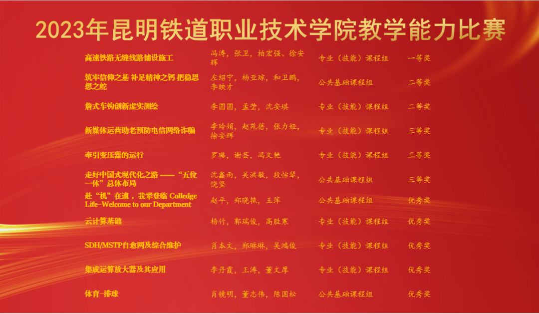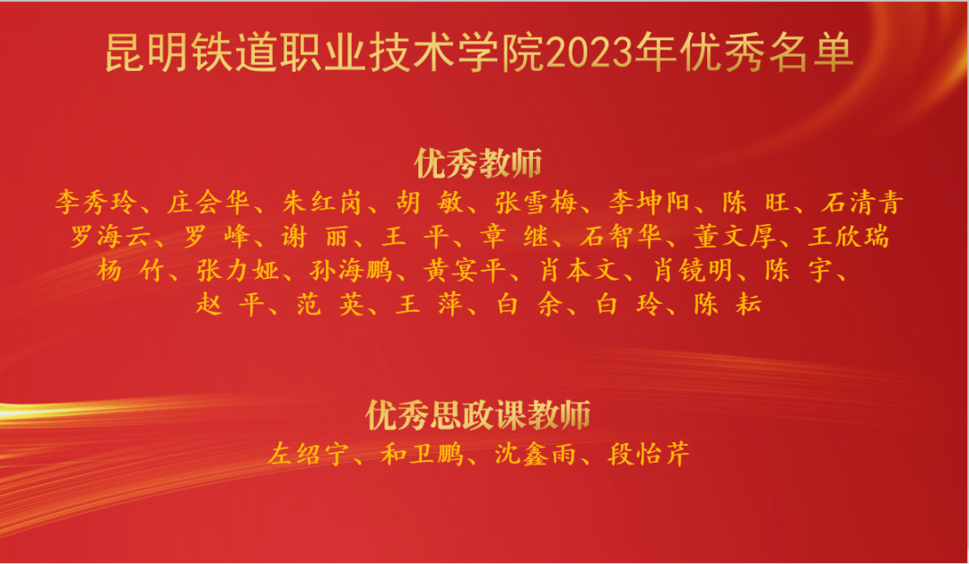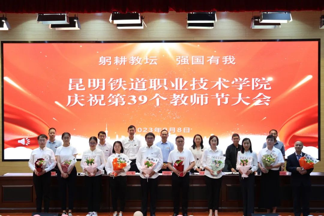会上还宣读了我院师生在各级各类竞赛中取得优异成绩的团队及个人;2021-2023年期间光荣退休教职工名单;从事教育工作满30周年教职工名单。介绍了2023年新入职教师;介绍了即将赴老挝参与援老挝铁道职业技术学院教育合作阶段的首批教师。