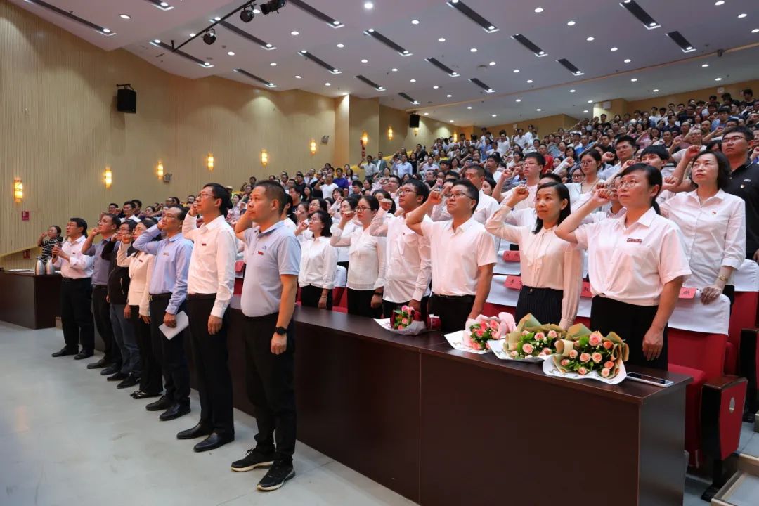 大会最后,在纪委书记李永良的带领下,全体参会教师庄严宣誓,忠于党的教育事业,贯彻党的教育方针,履行教师神圣职责。
