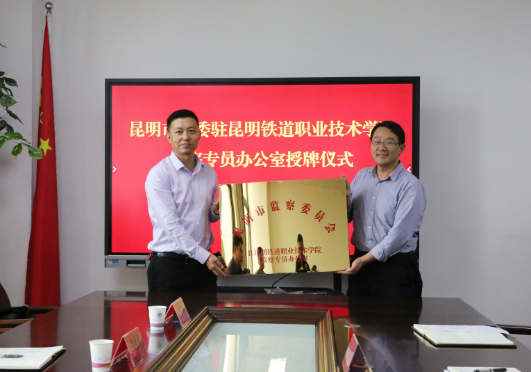 龙江常委代表市纪委市监委宣读了李永良同志任昆明市监委驻新葡萄AMG官方网站监察专员的任职通知,并向学院授牌,李永良代表学院接牌。
