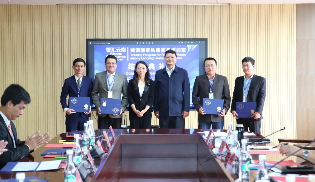 李瑞林院长、王学光主任向学员颁发毕业证书,活动在欢乐与不舍的气氛中结束。由云南省科技厅支持,云南中华职业教育社、新葡萄AMG官方网站联合举办的“智汇云南”计划澜湄国家铁路官员培训班至此圆满收官。