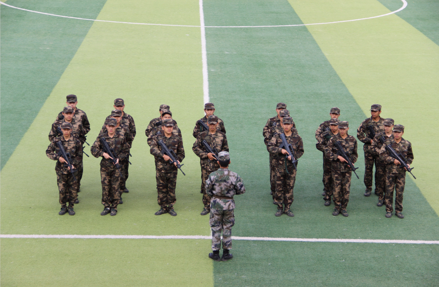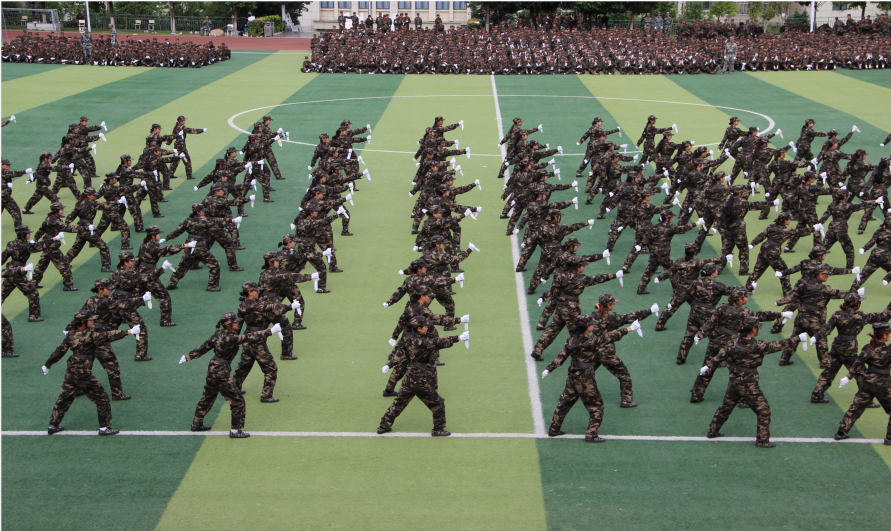 在军训汇报表演中,参训同学依次表演了擒拿拳、格斗拳、匕首操和战术演练。他们在操场上变换队形,先后摆出20大、建校时间1958、65周年、校训“铁肩道义”、我爱新葡萄等巨型标语,以实际行动表达出感党恩、听党话、跟党走,努力成为“政治坚定、素质全面、模范表率、堪当重任”新时代青年的决心。