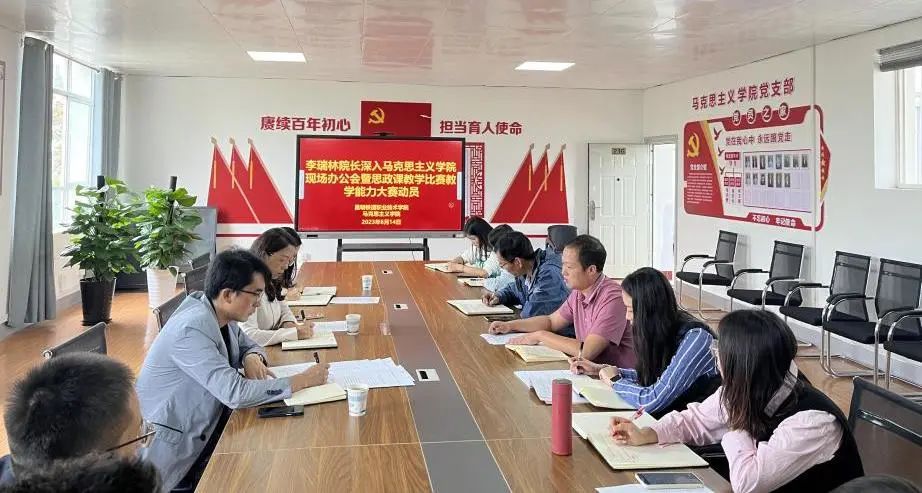 6月14日,学院党委副书记、院长李瑞林到马克思主义学院现场办公并为思政课教学比赛和教学能力大赛作赛前动员。全体参赛教师参加会议。