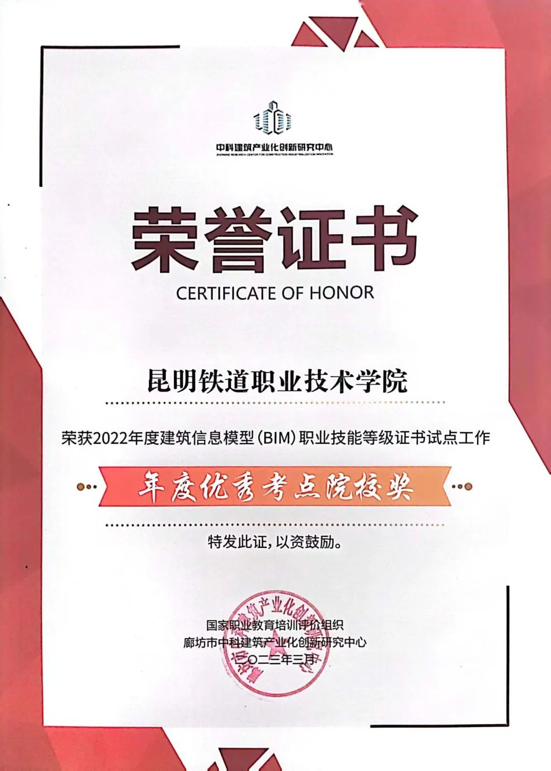 新葡萄在2022年度建筑信息模型(BIM)职业技能等级证书试点工作中荣获佳绩