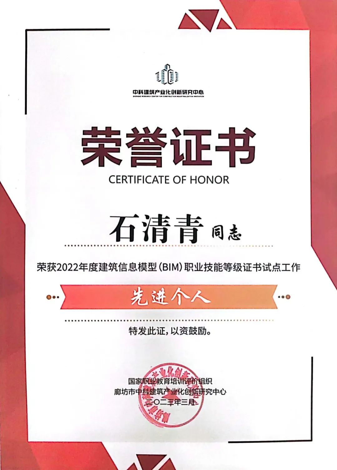 新葡萄在建筑信息模型(BIM)职业技能等级证书考核站点中荣获“2022年度建筑信息模型(BIM)职业技能等级证书试点工作优秀考点院校奖”,新葡萄电气工程学院石清青老师荣获“2022年度建筑信息模型(BIM)职业技能等级证书试点工作先进个人”。