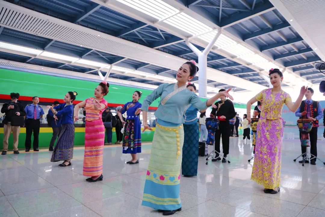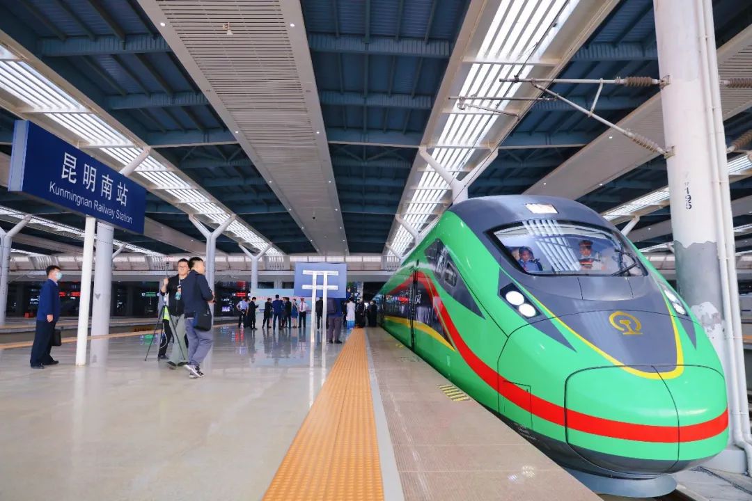 今天上午8:08,中老铁路从昆明南、万象站双向对开国际旅客列车,铁轨的“硬联通”促进中老两国人民的“心联通”。