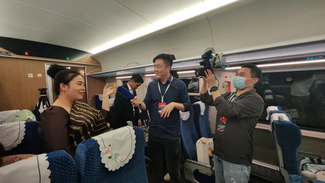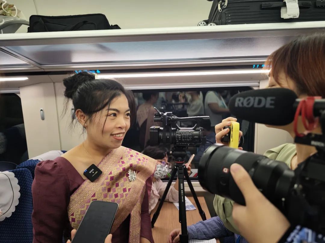 在今天的列车上,5名老挝铁路教师接受了中央、省、市各级各类媒体的采访,大家纷纷表达了激动的心情,都表示今天是个值得纪念的日子,尤其作为老挝第一批铁路教师来说,更是意义非凡。今天的这趟列车,让两国人民的心更近了,也让两国的政治经济文化交流更深入了。作为这条铁路的建设维护者,深感肩上的责任重大,今后一定会将在中国学到的铁路知识带回老挝,为自己的国家培养更多的铁路专业人才。