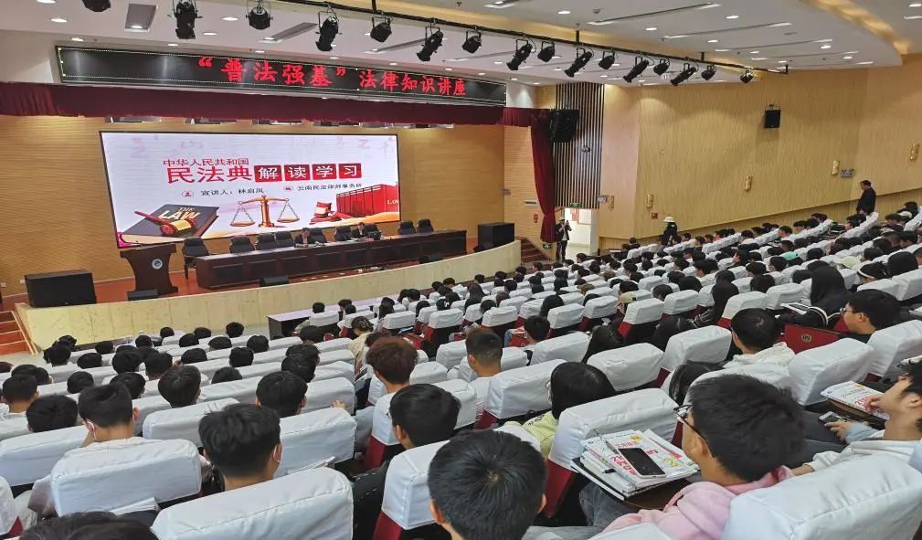 3月30日,学院邀请云南民定律师事务所林启凤律师以《中华人民共和国民法典解读》为题到校开展“普法强基”法律知识讲座,重点阐释了《民法典》的基本原则和主要内容,引导广大师生在社会生活中秉持平等、诚实、善良,信守诺言、绿色节约的原则,知法守法、懂法用法,进一步提高了广大师生法律意识和法治素养。