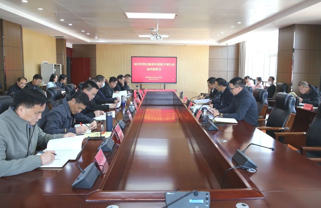 3月1日,学院召开普法强基补短板专项行动动员部署会,传达省市工作部署要求,安排学院工作。党委书记王树华强调,要深入学习贯彻习近平法治思想,以及党的二十大关于全面依法治国,推进法治中国建设的重大部署,按照市教育体育系统工作安排,坚决抓好普法强基补短板专项行动。