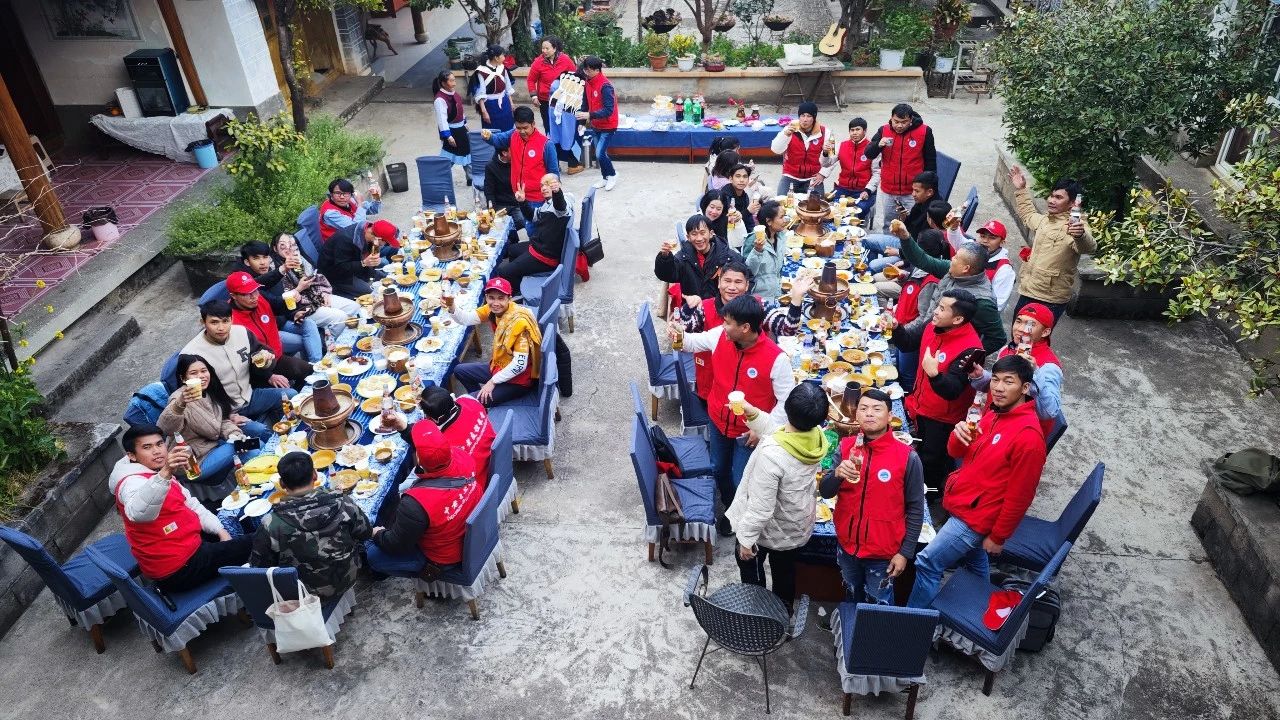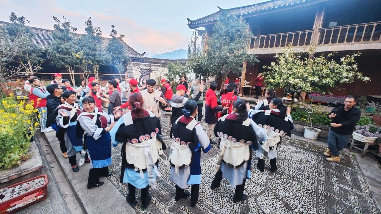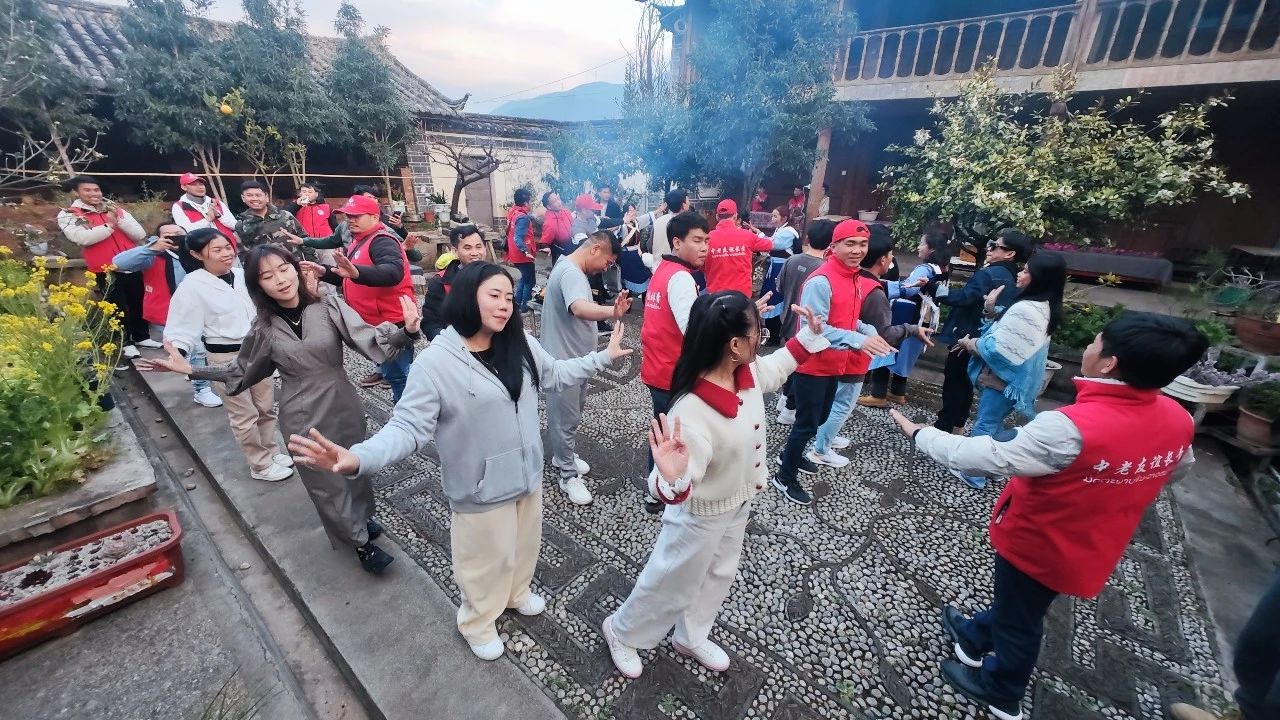 用餐结束后,老挝籍教师们和纳西族群众一起围着篝火,一支老挝舞蹈,一曲纳西“阿哩哩”,大家手牵着手,你教我老挝舞步,我教你纳西打跳,欢快的气氛感染着在场的所有人,两国间的文化交流融在了举手投足中,也融在了大家的笑脸上。