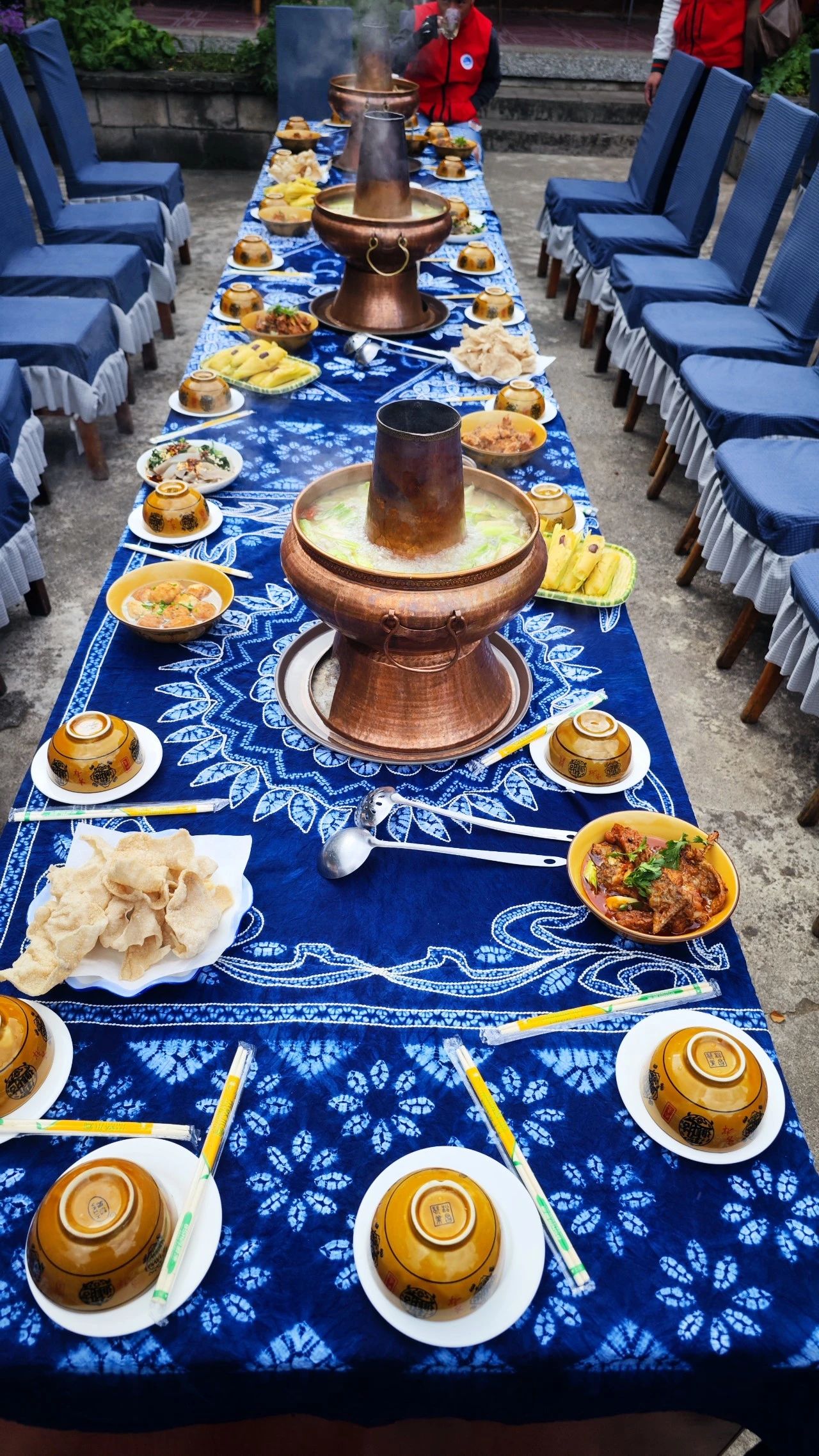 在白沙古镇三房一照壁的民居里,纳西族的“月亮姐姐”给老挝籍教师们准备了一顿丰盛的“长街宴”,也分享了纳西传统服饰“披星戴月”的寓意,让大家置身其中真切感受了纳西族庭院文化、民俗文化和农家生活氛围。“月亮姐姐”还给老挝籍教师们介绍了长街宴是纳西族在迎接重要宾客或庆祝年节时的筵席,是表达祝福、祈求美好愿望的一种仪式。大家吃着主人家准备的纳西铜锅和纳西八大碗等传统美食,听着能歌善舞的纳西族群众唱起的宴席曲和敬酒歌,既对满桌食物感到新鲜好奇,也感动于纳西人民的热情好客。