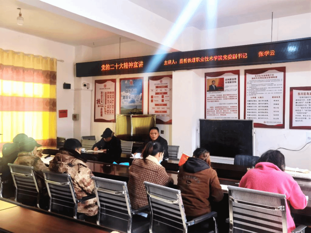 1221日,党委副书记张学云到东川区乌龙镇园子村,向村党员和群众代表宣讲党的二十大精神。