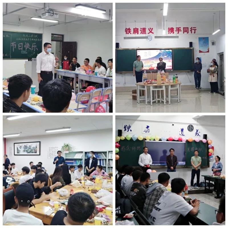 学院党委班子成员分别到各班级与同学们欢庆中秋,在与同学们的亲切交流中了解大家在学习生活中存在的困难和问题,听取大家对学院工作的意见和建议,表示学院将进一步优化后勤服务保障体系,为同学们学习生活和文体活动创造良好条件,并叮嘱同学们要利用视频、电话等形式为家人们送上节日问候。