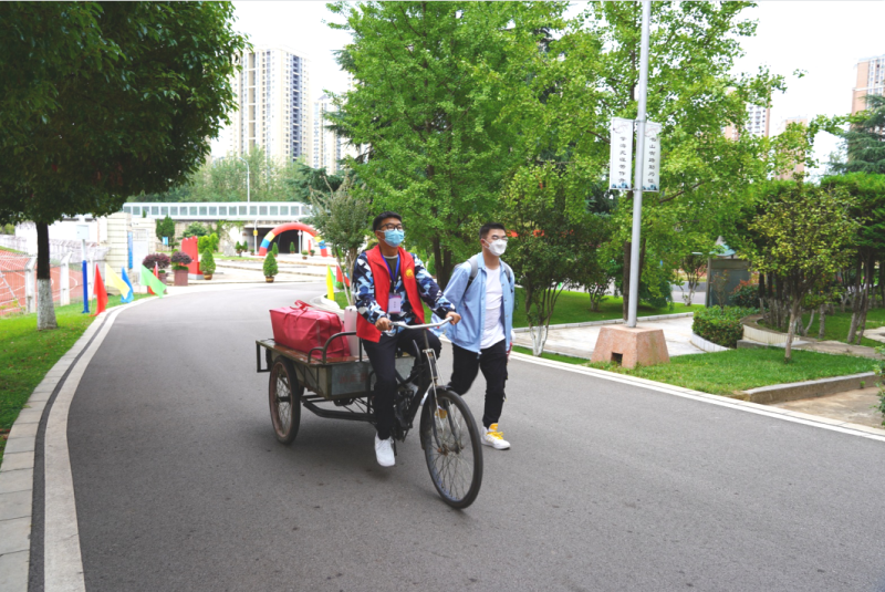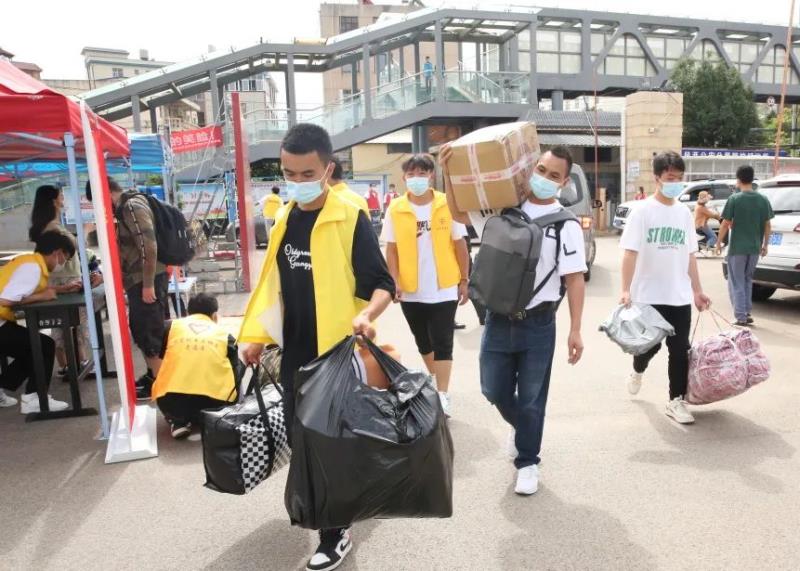 他们忙着为新生们运送行李