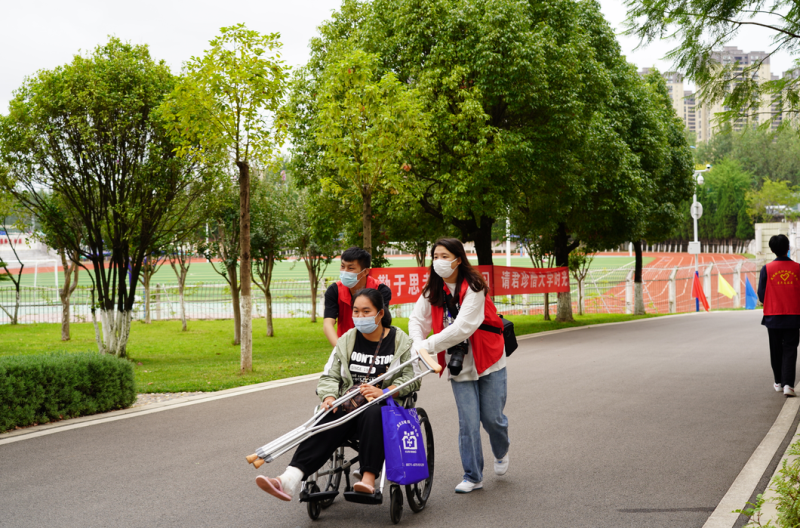 志愿者们忙碌地穿梭在校园里