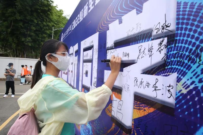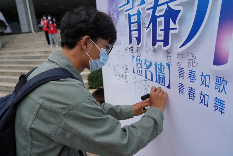 同学们在签名墙上