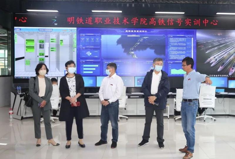 协会领导一行参观了城市轨道交通实训基地、云南高速铁路技术公共实训基地、高铁信号系统实训中心、机车驾驶模拟仿真中心等学院教学实训场所。随后到教室观摩了援老挝铁道职业技术学院学员上课情况。