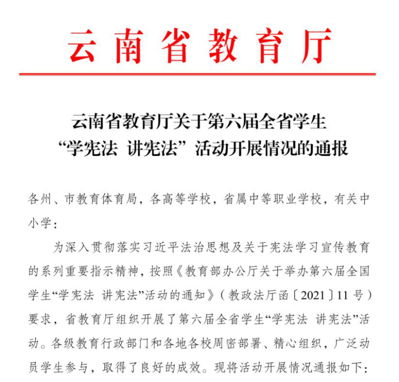 为深入贯彻落实习近平法治思想及关于宪法学习宣传教育的系列重要指示精神,按照省教育厅的相关要求,我院积极组织学生参加第六届全省学生“学宪法 讲宪法”活动。在我院徐安进老师的指导下,徐煜炜同学荣获“学宪法 讲宪法”演讲比赛高校组三等奖。