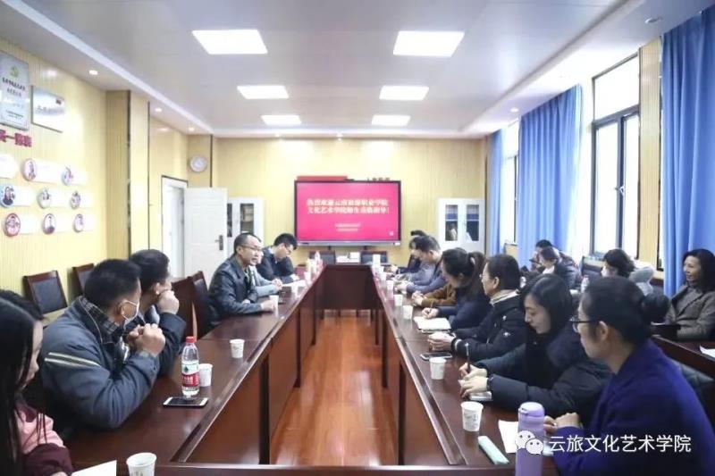 近日,云南旅游职业学院文化艺术学院院长王雪梅携师生代表近70人到新葡萄铁道运输学院就党支部工作开展及专业建设等方面内容进行参观并开展座谈交流。铁道运输学院党支部书记及党员教师代表参加学习交流。