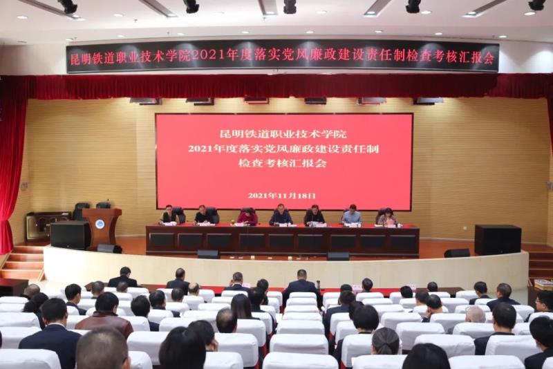 党委书记张志宏代表学校党委从思想引领、政治引领、压实管党治党责任等五个方面汇报了学校2021年度落实党风廉政建设责任制工作情况,分析了问题,查找了原因,明确了下步方向。按照考核安排要求,党委书记张志宏,党委副书记、校长李瑞林分别作了口头述责述廉报告,其他班子成员以书面形式作了述责述廉报告。参会人员现场对学校领导班子及领导班子成员落实管党治党、推进党风廉政建设和反腐败工作等情况进行了民主测评。会后,考核组实地检查并查阅相关台账资料。