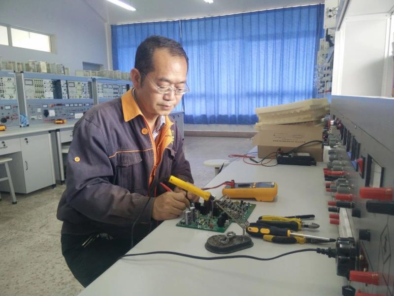 罗峰老师还自主研发项目《低压电工考核板的设计与制作》,基于学校每年承接大量的铁路局职工的取证、复证培训工作,但学校并没有培训设备的基础上,带领电工电子教研室全体老师,自主设计和研发了低压电工考核板。