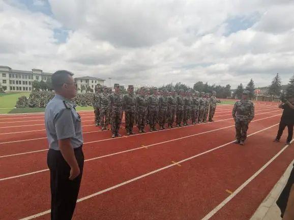 7月14日上午,云南省军区办公室主任李为国大校、省军区办公室史朝华上校慰问2020级军训教官及参训学生并检查军训工作。