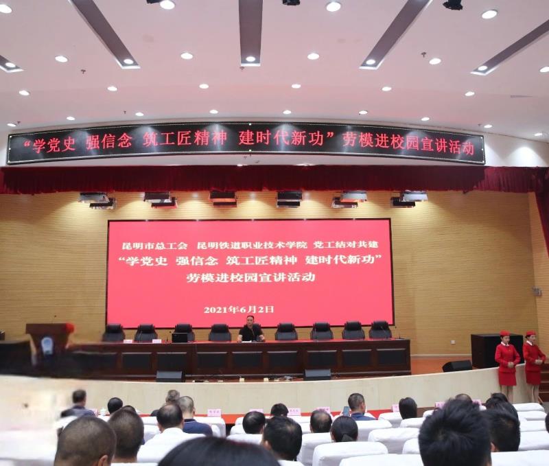 为大力弘扬劳模精神、劳动精神、工匠精神,引导广大教职工更加紧密地团结在以习近平同志为核心的党中央周围,当好主人翁、建功新时代,结合党史学习教育和支部党工结对共建内容,依托与昆明市总工会党支部结对共建平台,新葡萄积极开展“学习先进典型”邀请劳模进校园活动,特邀两位劳动模范进校园开展“学党史 强信念 筑工匠精神 建时代新功”宣讲活动。昆明市总工会党组成员、副主席何树升等昆明市总工会有关部门负责同志,学院领导班子及师生代表近300人参加宣讲活动。