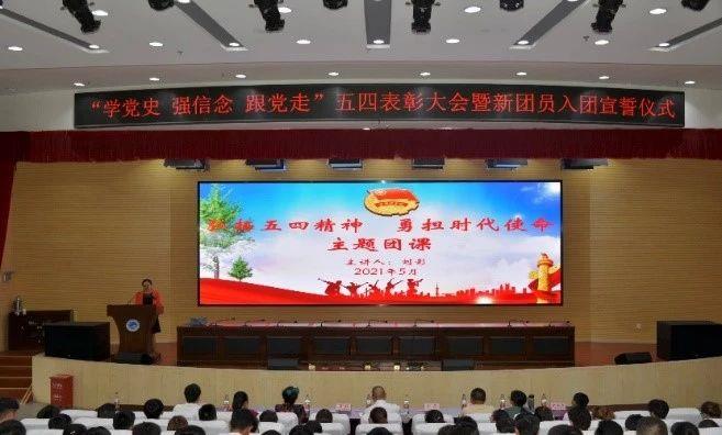 为深入学习贯彻习近平总书记关于青年和共青团工作的重要思想以及考察清华大学的重要讲话精神,充分发挥共青团在大学生思想政治引领中的先锋作用,引领广大青年在中国共产党成立100周年的重要历史时刻,从党史学习教育中激发信仰、获得启发、汲取力量,激励全校青年为学校高质量建设发展,努力创建中国特色高水平高职院校奋力拼搏,校团委于2021年5月8日在睿智楼报告厅隆重召开了“学党史 强信念 跟党走”五四表彰大会暨新团员入团宣誓仪式。学生处、校团委负责人、各二级学院团学会负责人及相关老师,受表彰代表以及各二级学院新发展团员参与表彰大会。