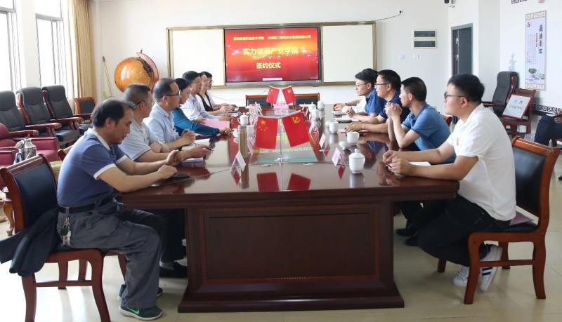 校长李瑞林在致辞中表示,产教融合是职业教育的本质特征,校企合作是职业院校办学的基本模式,双方签署合作协议正是贯彻落实习近平总书记重要指示精神和全国职业教育大会精神的重要举措。双方共同建产业学院,就是要积极践行德技并修、工学结合的育人机制,践行双主体育人的中国特色现代学徒制,做到招生招工一体化,明确学徒的企业员工和职业学校学生双重身份,校企共同研制教学标准与实施方案,共同承担教育教学任务的双导师制度,共建共享教学资源体系,改革培养模式,规范培养过程,让学生学到真本事,毕业有出路,家庭有希望,企业有人才,社会有发展。