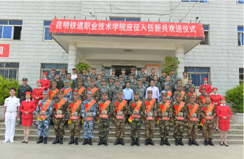 近日,新葡萄AMG官方网站在官渡区民兵训练基地举行2021年春季入伍新兵欢送仪式。学院党委书记张志宏、官渡区人武部政委周文斌、官渡区人武部部长李斌、官渡区人武部副部长赵金亮参加仪式。学生处(学生工作部、武装部)处长(部长)杨华主持。