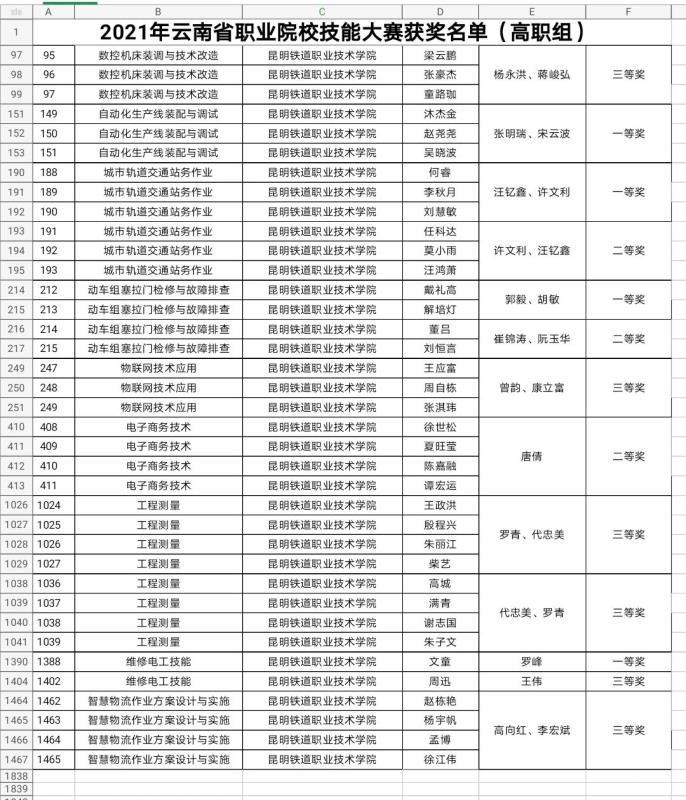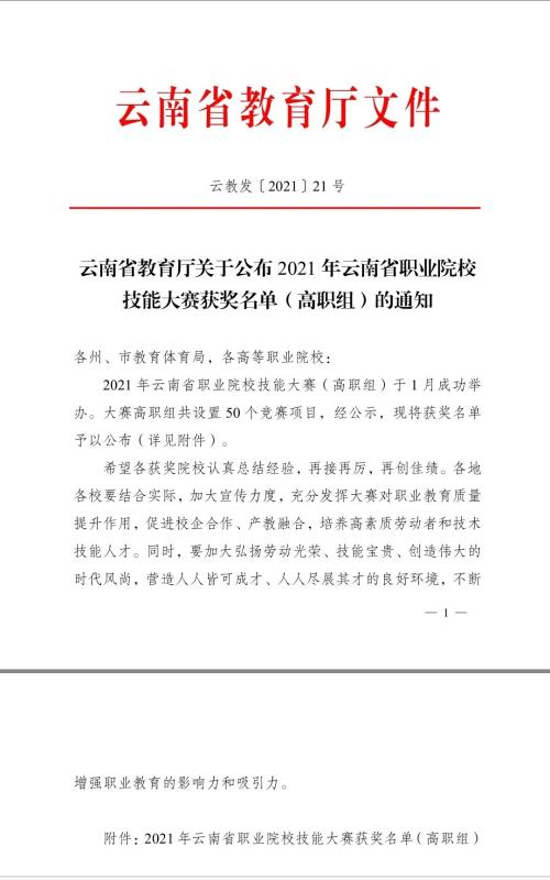 近日,云南省教育厅公布了2021年云南省职业院校技能大赛获奖名单(高职组)。
