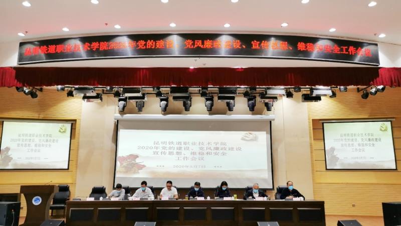 5月7日,学院党委召开2020年度党的建设、党风廉政建设、宣传思想和维稳安全工作会议,深入贯彻落实2020年全省教育工作会议、全省高校思想政治工作视频会及昆明市教育体育系统党的建设、党风廉政建设工作部署会议精神,总结2019年工作,分析形势,安排部署2020年任务。