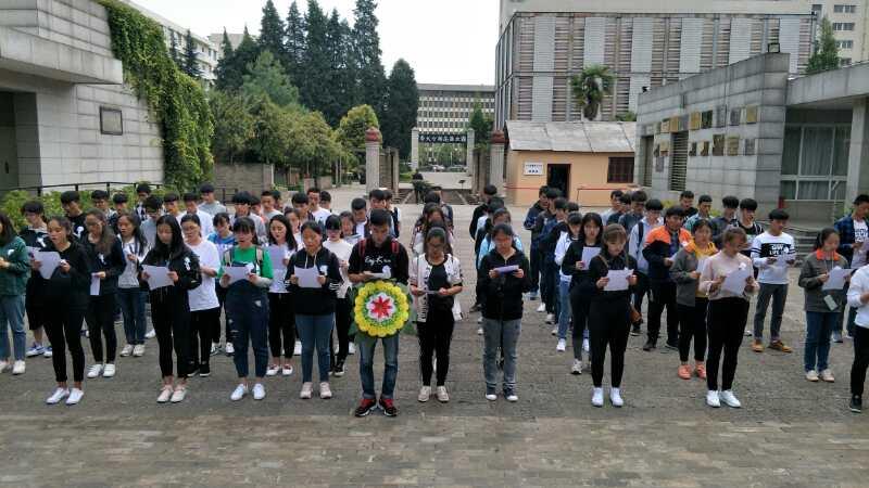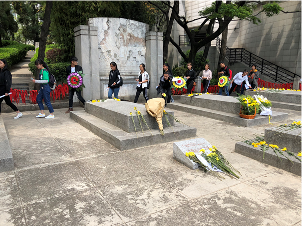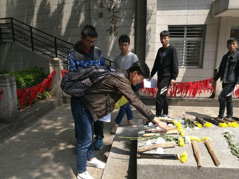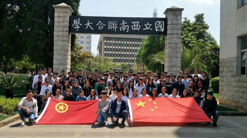2018年33013:30由学生干部、班委、团员代表共计80人组成的队伍来到昆明市一二一大街云南师范大学内参观西南联大旧址爱国主义教育基地,并向一二·一运动罹难烈士进行清明祭扫活动。