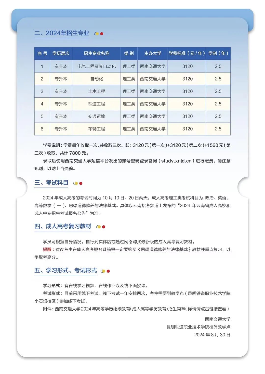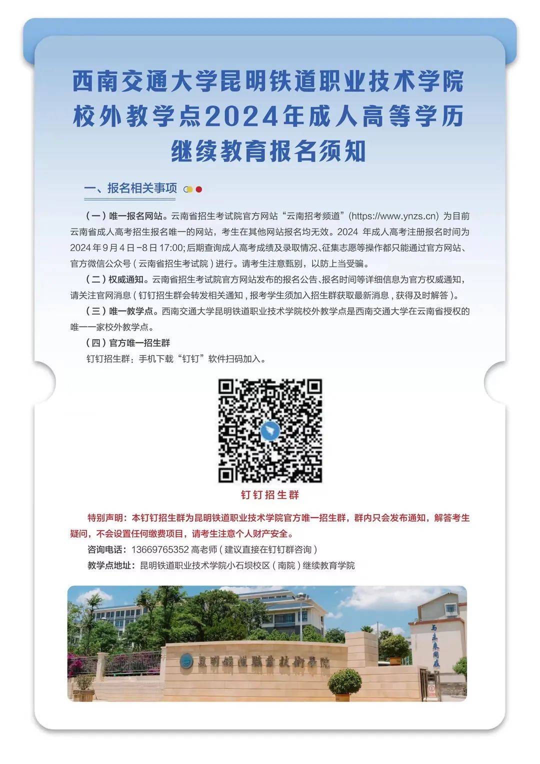 西南交通大学新葡萄AMG官方网站校外教学点2024年成人高等学历继续教育报名须知