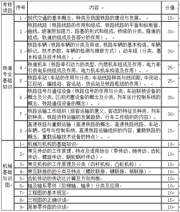 本考核说明适用于云南省申请报考高职高专院校铁道运输类专业的三校生,目的在于考核学生对基本技能的掌握程度,检测学生是否具备专科阶段的学习基础。