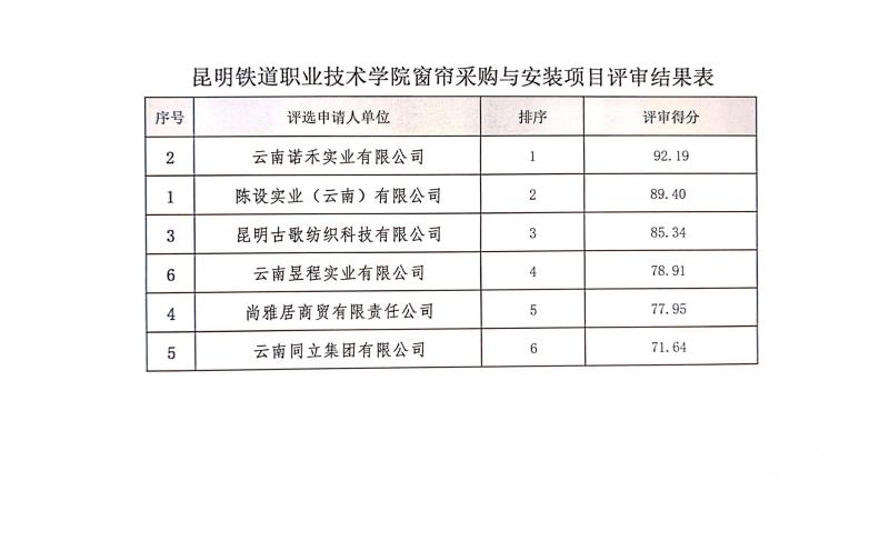 新葡萄AMG官方网站窗帘采购安装评审结果表
