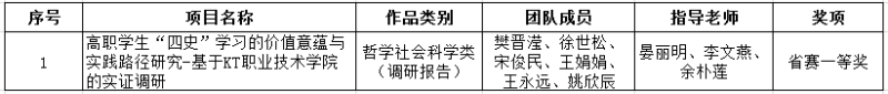 2021年5月15日,第十一届“挑战杯”云南省大学生课外学术科技节终审决赛在云南省中医药大学举行。新葡萄信息与通信工程学院由晏丽明、李文燕及对外交流服务中心余朴莲三位老师指导的《高职学生“四史”学习的价值意蕴与实践路径研究—基于KT职业技术学院的实证调研》项目荣获省赛一等奖,并将代表云南参加国赛。