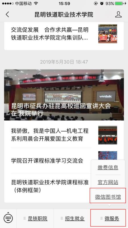 操作指南:关注“新葡萄AMG官方网站”微信公众号,点击右下角“微服务”进入子菜单,点击进入“微信图书馆”。