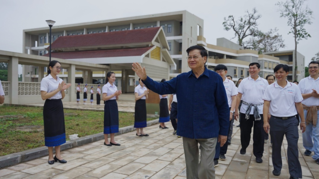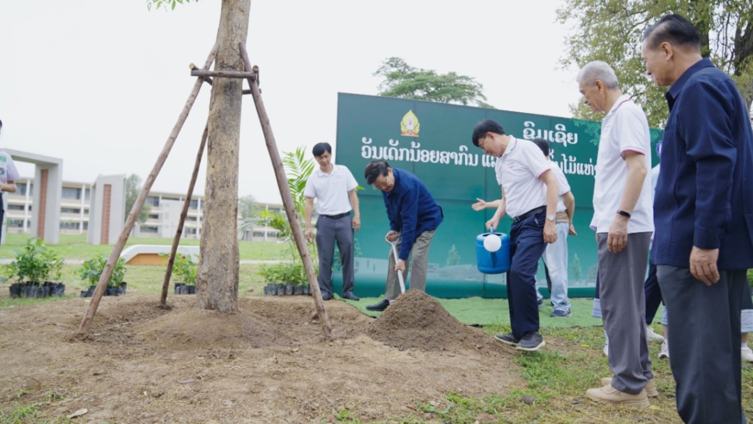 老挝人民革命党中央总书记、国家主席通伦·西苏里到老挝铁道职业技术学院出席植树节活动,冀望学院培养优秀铁路人才建设维护好老中铁路