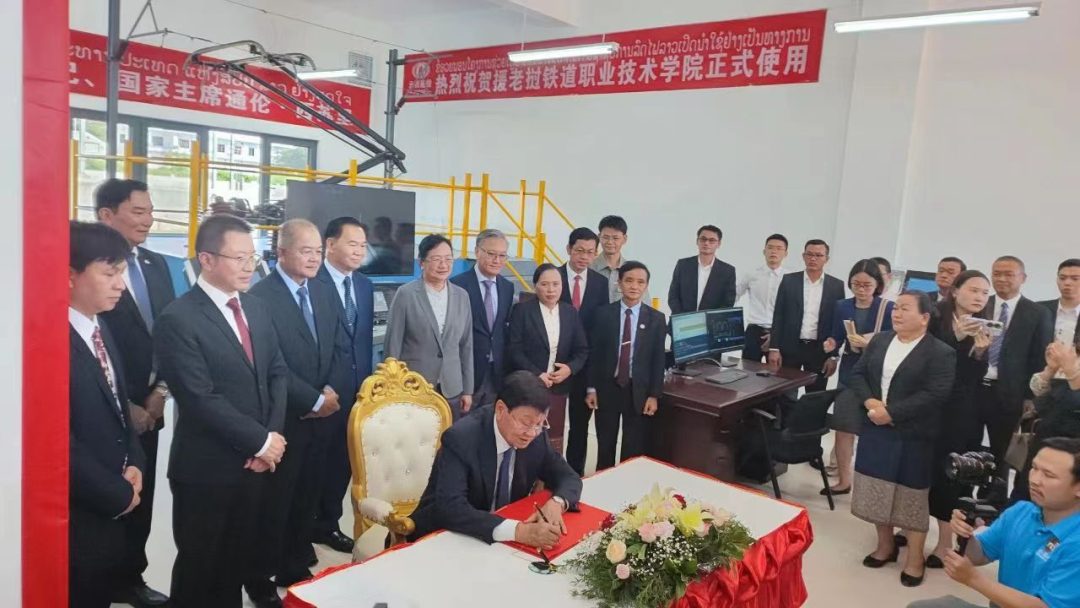 这是通伦·西苏里继2023年10月12日出席中国政府援建的老挝铁道职业技术学院整体移交仪式后,第二次到老挝铁道职业技术学院。移交仪式上,通伦·西苏里亲自敲响象征学院正式投入使用的锣声,并对项目顺利实施表示高度赞许,用中文说道“好,很好,非常好!”。老挝教育与体育部授予新葡萄AMG官方网站“突出贡献奖”。目前,老挝铁道职业技术学院开办6个专业招生359人。