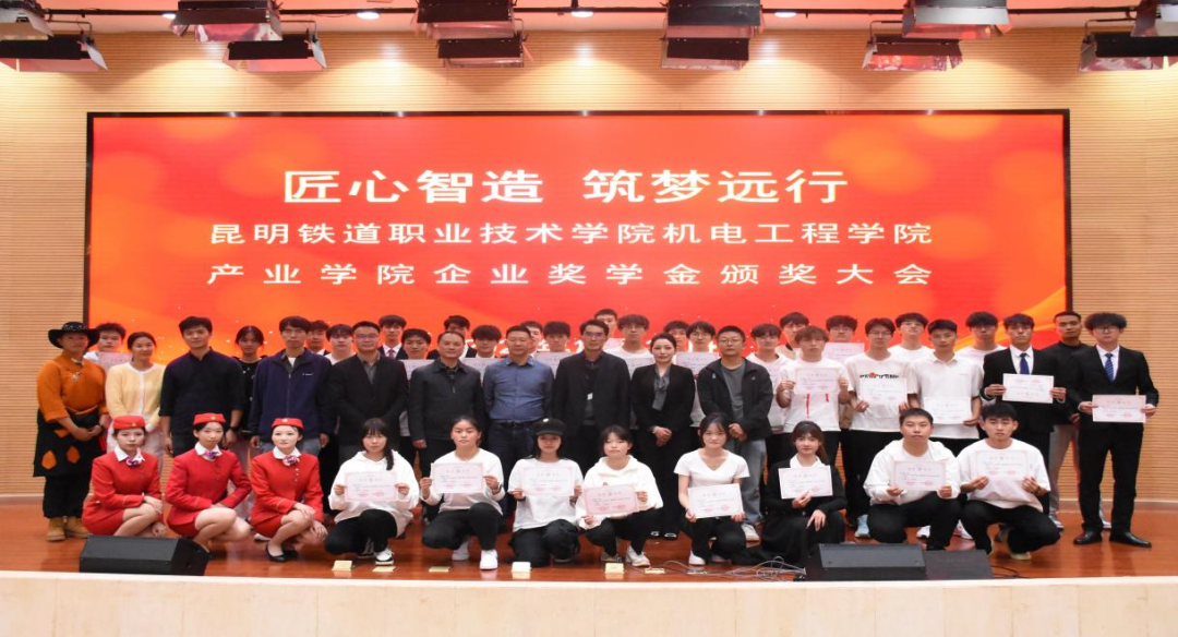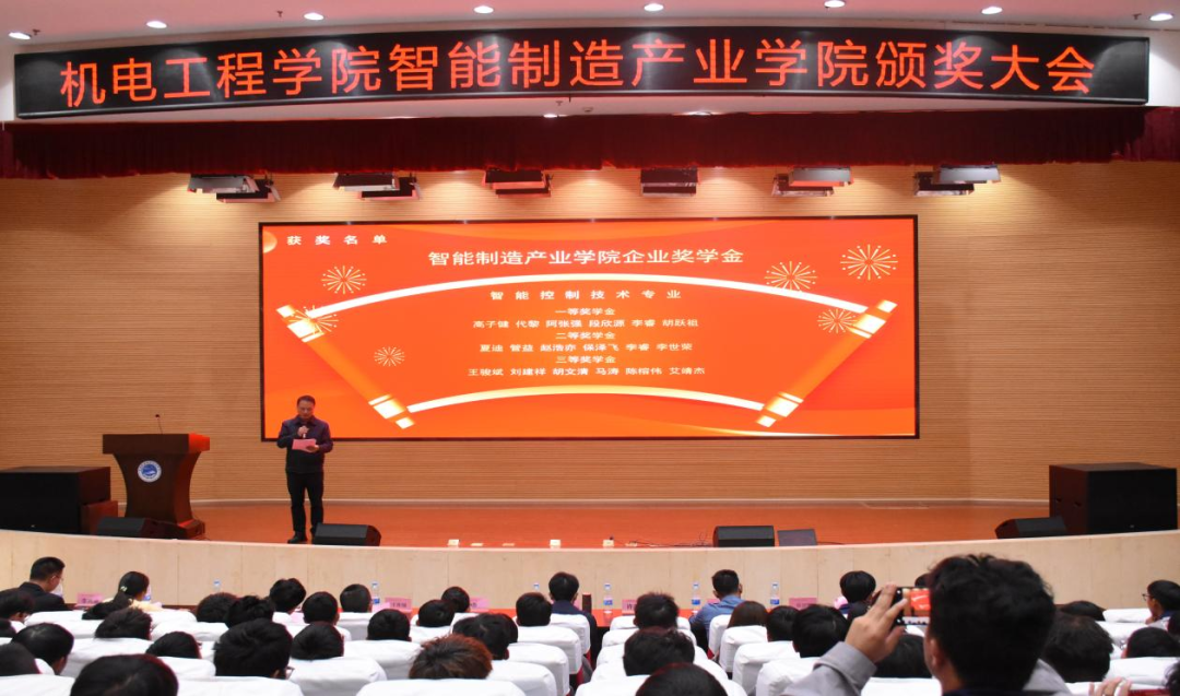 近日,机电工程学院在学院报告厅举行高新装备产业学院和智能制造产业学院企业奖学金颁奖大会。学院党委委员、纪委书记张大托,党委委员、组织部部长邹建斌,中国铁建高新装备股份有限公司培训中心党总支书记、副主任杨昂宇,湖南科瑞特股份有限公司校企合作事业部总监陶薇,机电工程学院党政负责人,教师代表及产业学院639名学生参加大会。