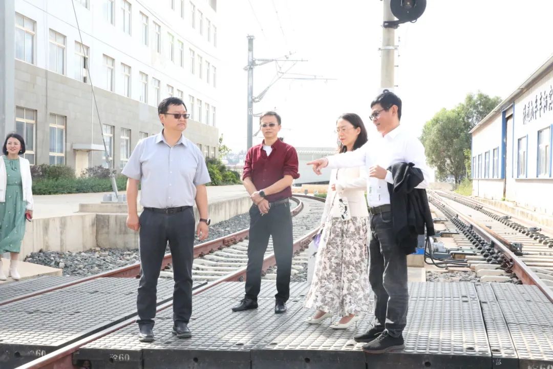 甘教授一行在李瑞林的陪同下参观了学院高铁实训基地,甘教授建议学院可在实训基地的基础上挖掘特色,提前布局,推进教科研团队平台建设。