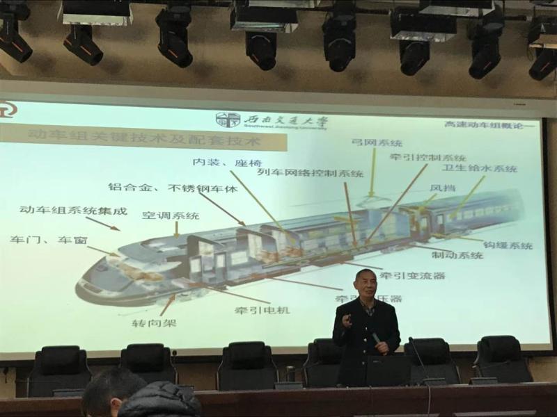 李芾教授以“高速列车的发展与现状”为题,通过生动的语言、鲜活的事例、广博的阅历,为大家呈现了一场精彩的专题讲座。